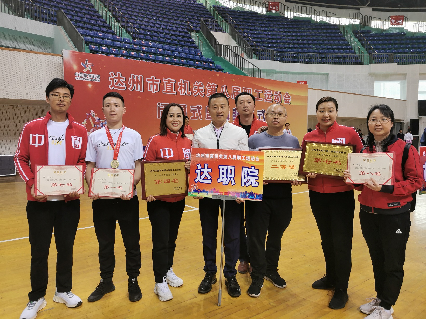 10月26日,达州市直机关第八届职工运动会闭幕式暨颁奖仪式在达州体育中心隆重举行。本届运动会设有第九套广播体操、五人制气排球、男女混合跳绳、绕杆接力跑等比赛项目11个,共有77个代表队4462人参加。