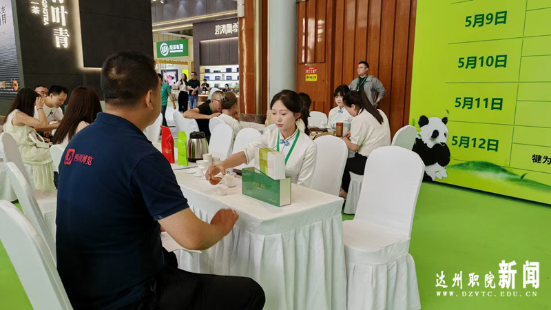 本届茶博会以“精制川茶·世界共享”为主题,汇聚全球茶业资源,展现茶文化与科技融合的创新成果。我校谢丹大师工作室师生5人在达州展馆现场推介茶艺精品在线课程“茶艺·川茶蜀韵”、以直播带货形式向全国观众推介万源富硒茶和薄荷红茶、现场演示《大竹白茶冲泡技艺》国家标准的应用,赢得了与会领导、嘉宾、企业和观众一致好评。