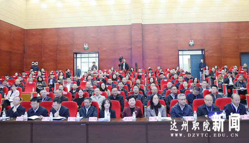 四川省职业技术教育学会副会长夏平,四川省中华职业教育社职业教育实践与研究专委会主任黄宗良,达州市委统战部副部长、市侨办主任赵运登,达州市中华职业教育社社务委员会主任、达州中医药职业学院院长王钦,达州市委教育工委委员、市教育局党委委员、副局长杨多,北京博康九州教育科技研究院院长郎易明,我校党委班子成员、教师代表,全省高职、中职院校代表等参加会议。