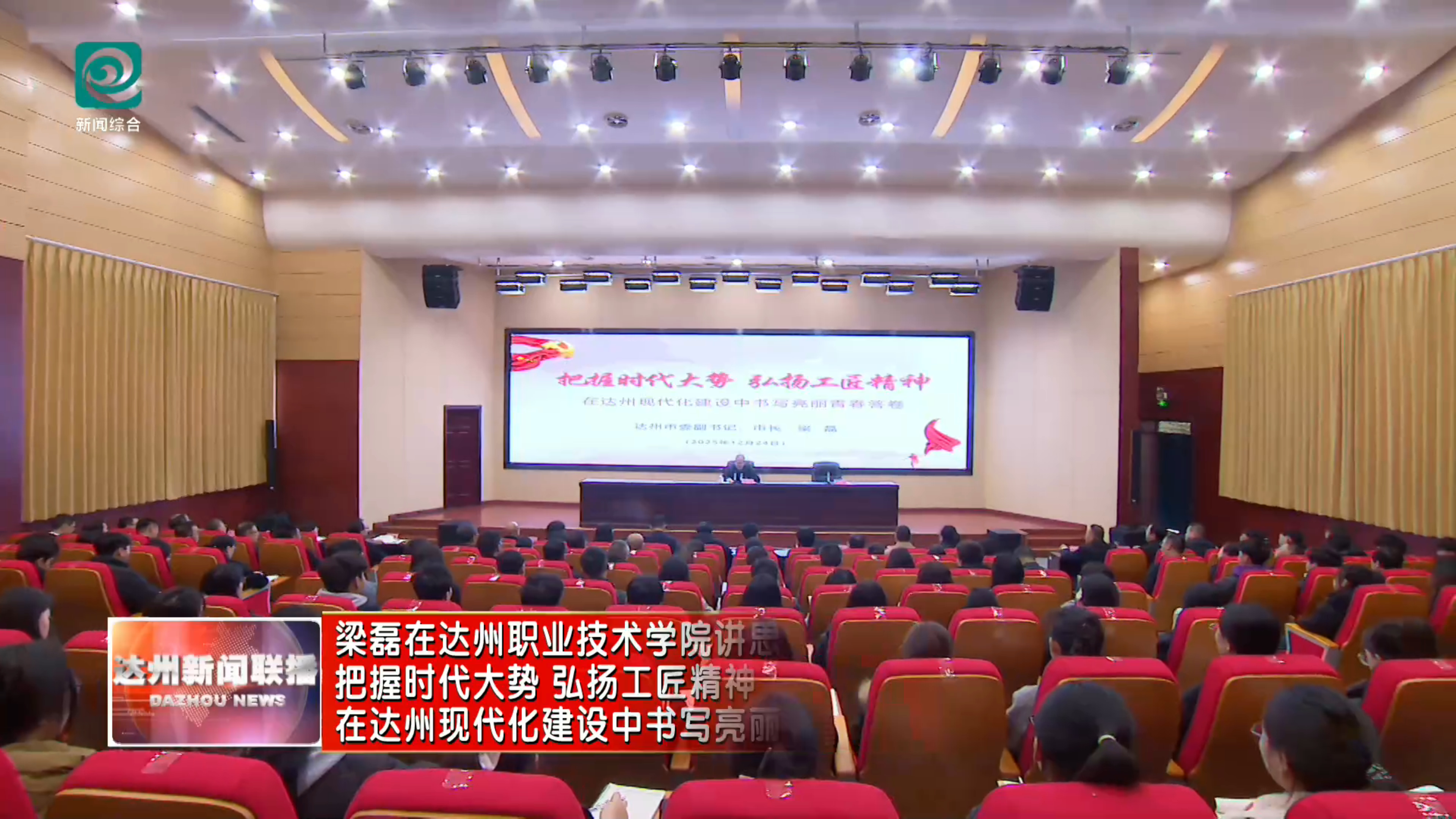 12月24日,市委副书记、市长梁磊来到我校为师生代表讲授思政课。他寄语广大青年学生,要深入学习领会党的二十届四中全会、省委十二届八次全会、市委五届十一次全会精神,把握时代大势,弘扬工匠精神,在达州现代化建设中书写亮丽青春答卷。