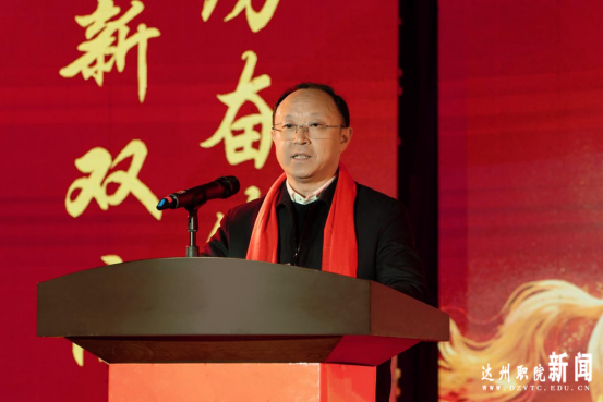 王隆毅向耕耘在教学、科研、管理一线的全体教职工致以最诚挚的问候和祝福。他指出,2025年全体教职工以“实”的作风砥砺前行,以“闯”的劲头开拓新局,以“干”的担当诠释使命,为学校改革发展倾注心血、挥洒汗水,为“双高”建设和创建职大奠定坚实基础。他勉励全体达职人,要坚持以习近平新时代中国特色社会主义思想为指导,全面贯彻党的教育方针,落实立德树人根本任务,坚定贯彻市委、市政府重大决策部署,在内涵发展上再下功夫,在师资队伍上再提水平,在产教融合上再开新局,在科研创新上再求突破,努力为建设教育强省、推动达州经济社会高质量发展贡献职教力量。